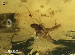 - ^ Lin, Q.; Shih, C.; Zhao, Y.; Ren, D. (2017). "A new genus and species of Prosopistomatidae (Insecta: Ephemeroptera) from mid-Cretaceous Myanmar amber". Cretaceous Research. 84: 401–406. doi:10.1016/j.cretres.2017.11.020.