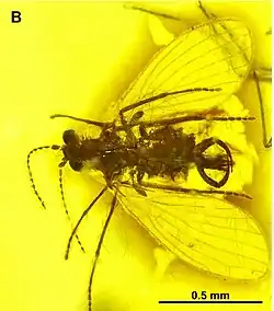 - ^ a b c Liu, S.; Peng, Z.; Shi, C.; Ren, D.; Yang, Q. (2024). "New Genus and Species of Webspinners (Insecta: Embioptera) from the Mid-Cretaceous of Myanmar with a Catalog of Fossil Members". Insects. 15 (9). 636. doi:10.3390/insects15090636. PMC 11431871. PMID 39336604.