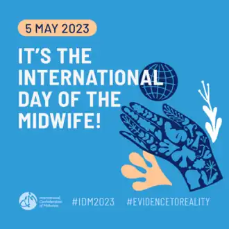 The International Day of the Midwife is annually celebrated on 5 May, and was established in 1992 by the International Confederation of Midwives (ICM) to celebrate and raise awareness about the midwifery profession.[1][2][3]: 69, 70