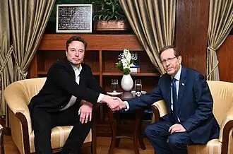 - ^ Robertson, Nick (November 10, 2023). "Elon Musk says Israel could thwart Hamas with 'conspicuous acts of kindness'". The Hill. Archived from the original on January 13, 2025. Retrieved February 8, 2025.