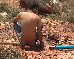 Paths of lives are crossed in one village in the West Bank. Along the broken water pipelines, villagers walk on their courses towards an indefinite future. Israel that controls the water, supplies only a small amount of water, and when the water streams are not certain nothing can evolve. The control over the water pressure not only dominates every aspect of life but also dominates the spirit. Bil'in, without spring water, is one of the first villages of the West Bank where a modern water infrastructure was set up. Many villagers took it as a sign of progress, others as a source of bitterness. The pipe-water was used to influence the people so they would co-operate with Israel's intelligence. The rip tore down the village. Returning to the ancient technique of collecting rainwater-using pits could be the villagers’ way to express independence but the relations between people will doubtfully be healed.