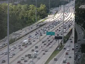 In the late 1990s, the need to repave and reconstruct portions of the West Loop became evident. The reconstruction project was approved, but only as a "no-capacity-added" project; only safety and structural improvements could be made.[15][16] Some Houston residents, however, have noted that merging lanes and exit ramps are particularly long and, in effect, serve as additional lanes.[17]