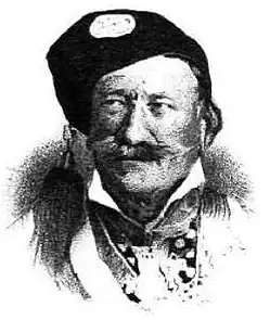 At the end of 1825, he was one of the supporters of the creation of a regular army, but during the next year, he and other chieftains turned against it, fearing that with the generalization of the institution they would lose their influence.[7] The same year, he participated in Charles Fabvier's campaign in Euboea and later he took part in the defence of the Acropolis during its siege by Reşid Mehmed Pasha.[2] After the death of Gouras, he replaced him as commandant of the fortress.[3] In 1828, he became second pentakosiarch in the 4th chiliarchy[8] and was distinguished in 1829 for his participation in the Battle of Petra, the last battle of the Greek Revolution.[9]