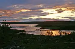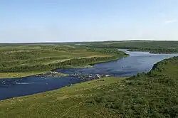 The Iokanga (Russian: Иоканьга) is a river in the north of the Kola Peninsula in Murmansk Oblast, Russia. It is 203 km in length. The area of its basin is 6,020 km2.[1] The Iokanga originates in Lake Alozero and flows into the Barents Sea. Its biggest tributary is the Sukhaya. The river's indigenous Sami inhabitants have traditionally spoken the Ter Sami language. However, in the 1930s the largest Ter Sami village, Yokanga, was declared "perspectiveless" by the Soviet authorities and its inhabitants were forced to move to the Gremikha military base.