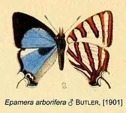 Iolaus arborifera is a butterfly in the family Lycaenidae. It is found in the highlands of Kenya.[3] The habitat consists of montane forests.