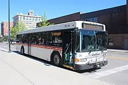 Iowa City Transit is an American public transit system serving Iowa City, Iowa. The service provides several routes serving various areas of the city as well as University Heights, originating and terminating at the Iowa City Downtown Interchange. In addition, a loop route is provided for school students at the beginning and end of each school day. In addition to Iowa City Transit, Coralville Transit, the University of Iowa Cambus, and the 380 Express also provide transit service in the Iowa City area, and Iowa City Transit shares several bus stops with them.[1][2]