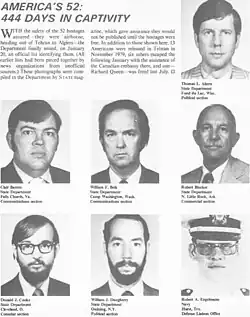 A State Department diplomatic cable of November 8, 1979, details "A Tentative, Incomplete List of U.S. Personnel Being Held in the Embassy Compound."[58]