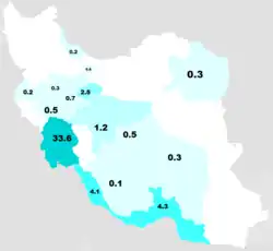 Iranian Arabs (Arabic: عرب إيران ʿArab-e Īrān; Persian: عربهای ايران Arabhā-ye Irān) are the citizens of Iran who are ethnically Arab.[3] In 2008, their population stood at about 1.6 million people.[4] They are primarily concentrated in the Khuzestan province.[5][6][7]