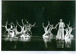 Some early works of the company were those choreographed by Nilla Cram Cook for the Revival of the Iranian Ancient Arts Ensemble which were restaged by Cram Cook's former dancers, Nejad and Haideh Ahmadzadeh.[7] Prominent and world-famous ballet dancers from renowned ballet companies of the world were often invited to dance the principal roles of all great classical ballets. In order to keep the high standard of the productions the company relied on guest artists from abroad to perform the leading roles in most work premieres.[8]