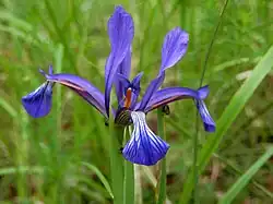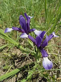 Iris sintenisii is a species in the genus Iris, in the subgenus Limniris and in series Spuriae, with tall thin stems, violet-blue flowers and long grass-like leaves. It is a rhizomatous perennial plant, from grass meadows (including steppe) parts of Europe, Russia, and Turkey. It is cultivated as an ornamental plant in temperate regions.