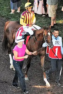 "He ran a real good race; he tried hard to the end," said jockey Rajiv Maragh. "When I (entered the stretch), I had horse left and I knew it was going to take a really big run from another hose to catch me. I was pretty confident turning for home. I saw the other horse coming and obviously a race of this magnitude I'm going to ride hard to the wire, and even when I was ahead you know they're going to be coming at you, but my horse never really gave up. He ran hard to the end he just got a little bit overpowered late in the race, but I'm proud of his effort."[13]