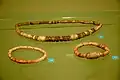 Most burials in the Iron Gates Mesolithic are hard to determine due to no observable characters on the surface, however some burials are below low stone mounds or encircled by large stones. The people of the Iron Gates have sometimes been found to have objects with them in their graves, including animal and human skulls, antlers, tools and body ornaments. However, some of the bone objects found in burials can't be considered burial goods, due to the Iron Gates Mesolithic people's often burying people in areas previously used for other burials and settlement. The most notable object found in burials are marine shells and carp pharyngeal teeth beads, which were worn on clothes.[9][19][3]
