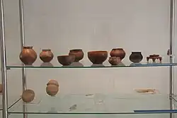 Many artefacts have been found in this area, including decorated objects such as tools made from stone, bone and antlers, with decorations and stone artefacts (ornamental boulders, altars and sculptures).[11] Major discoveries include various sites and towns, most notably Lepenski Vir, which is an Iron Gates settlement containing several trapezoidal buildings and which has revealed information on settlements in the area.