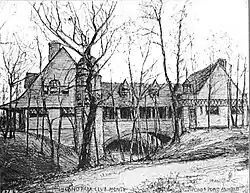 The Pond brothers gained their greatest acclaim as the architects for Jane Addams's Hull House. Their father's work as warden of the state prison had sparked an interest in social reform and the settlement house movement. Allen Bartlitt Pond was the assistant superintendent of the Armour Mission,[16] an educational and healthcare center, when Jane Addams came to Chicago in January 1889 looking for a building in which to open a new settlement house.[17] The two became friends and were riding in a carriage when Addams saw an old two-story brick house on Halsted Street.[18] Addams took a lease on the house, which she named Hull House after its original owner, and hired the Ponds to put the old house into shape.[19][20]
