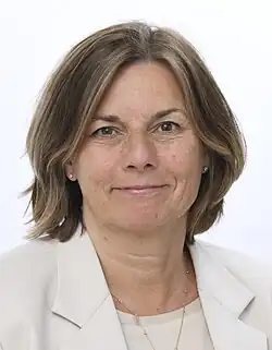 Isabella Lövin (born 3 February 1963) is a Swedish politician for the Green Party. She served as Minister for International Development Cooperation from 2014 to 2019, as Minister for the Environment from 2019 to 2021 and as honorary Deputy Prime Minister of Sweden from 2016 to 2021. She led the Green Party as co-spokesperson from 2016 to 2021, sharing the task with Gustav Fridolin (2014-2019) and Per Bolund (2019-2021).