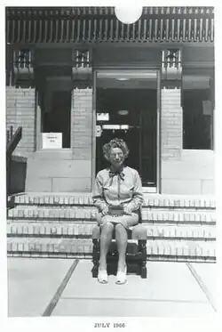 Johnson taught at Montana State University Billings, from 1949 to 1961 and served as department head from 1954 to 1961.[6] As a teacher of art in Montana she taught Modernism, often having to introduce her students to that genre. "She felt it was a requirement of her job that she push us and lead us to look in other directions that were not traditional, and she did it without saying a mean word about [Charles M.] Russell or any other traditional painter," said Donna Loos, one of her students.[7] She received the Montana Governor's Award for the Arts in 1983 and the Distinguished Service Award from Eastern Montana College (now Montana State University, Billings) in 1984. Her most famous student, Theodore Waddell, said three weeks after meeting her, "I decided I did not want to be alive and not make art."[8]