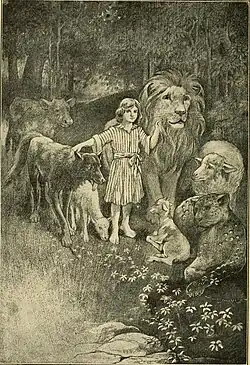 - "A little child": Bohlius interprets this with Jesus Christ[22] (cf. Isaiah 9:6) in particular observes, that they are not to be understood literally, as if the custom and order of things in the world would cease, or that things would be renewed as at the creation, but in a parabolical and enigmatical sense; and interprets them of[15]