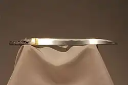 The Tantō "Hyūga Masamune", also made by Masamune, was also in the possession of Ishida Mitsunari. He gave this sword to Fukuhara Nagatake [the husband of his younger sister]; the sword was taken by an Eastern army general named Mizuno Katsushige after the Western army was defeated at the battle of Sekigahara.[17] It is a National Treasure of Japan, and is currently held in the Mitsui Memorial Museum.[18]