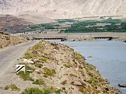 Ishkoshim (Tajik: Ишкошим), also Ishkashim (Russian: Ишкашим), is a village and a jamoat in south-east Tajikistan.[3] It is the seat of Ishkoshim District in Gorno-Badakhshan Autonomous Region. The jamoat has a total population of 7,673 (2015).[1] It lies on the river Panj. Ishkoshim lies opposite a town of the same name in neighboring Badakhshan Province of Afghanistan, although the name of the Afghan town is normally transliterated Ishkashim. A bridge opened in 2006 links the two towns.[4] There are plans to reconstruct the 100-km highway connecting Ishkoshim to the regional capital Khorugh, which has been damaged by snow avalanches.[5]
