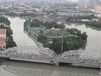 ![]() The island in the middle of the Pasig River with the Ayala Bridge in its foreground, looking due east | |