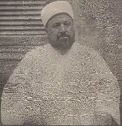 Central and prominent figures in 20th-century Islamism include Rashid Rida,[14] Hassan al-Banna (founder of the Muslim Brotherhood), Sayyid Qutb, Abul A'la Maududi,[15] Ruhollah Khomeini (founder of the Islamic Republic of Iran), Hassan Al-Turabi.[16] Syrian Sunni cleric Muhammad Rashid Riḍā, a fervent opponent of Westernization, Zionism and nationalism, advocated Sunni internationalism through revolutionary restoration of a pan-Islamic Caliphate to politically unite the Muslim world.[17][18] Riḍā was a strong exponent of Islamic vanguardism, the belief that Muslim community should be guided by clerical elites (ulema) who steered the efforts for religious education and Islamic revival.[19] Riḍā's Salafi-Arabist synthesis and Islamist ideals greatly influenced his disciples like Hasan al-Banna,[20][21] an Egyptian schoolteacher who founded the Muslim Brotherhood movement, and Hajji Amin al-Husayni, the anti-Zionist Grand Mufti of Jerusalem.[22] Al-Banna and Maududi called for a "reformist" strategy to re-Islamizing society through grassroots social and political activism.[23][24] Other Islamists (Al-Turabi) are proponents of a "revolutionary" strategy of Islamizing society through exercise of state power,[23] or (Sayyid Qutb) for combining grassroots Islamization with armed revolution. The term has been applied to non-state reform movements, political parties, militias and revolutionary groups.[25]