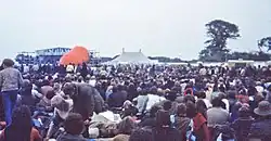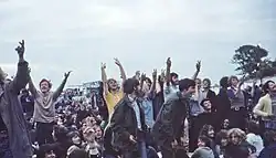 The 1969 Isle of Wight Festival was held on 29–31 August 1969 at Wootton Creek, on the Isle of Wight, England. The festival attracted an audience of approximately 150,000[1] to see acts including Bob Dylan, the Band, the Who, Free, Joe Cocker, the Bonzo Dog Band and the Moody Blues. It was the second of three music festivals held on the island from 1968 to 1970. Organised by Rikki Farr, Ronnie and Ray Foulk's Fiery Creations,[2] it became a legendary event, largely owing to the participation of Dylan, who had spent the previous three years in semi-retirement.[3] The event was well managed, in comparison to the recent Woodstock Festival, and trouble-free.