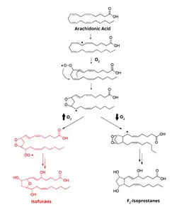 - ^ Roberts, LJ 2nd and Fessel, JP (Mar 2004). "The biochemistry of the isoprostane, neuroprostane, and isofuran pathways of lipid peroxidation". Chem Phys Lipids. 128 (1–2): 173–86. doi:10.1016/j.chemphyslip.2003.09.016. PMID 15037162.
