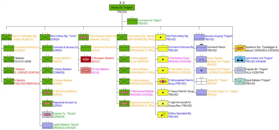 - The Mechanized Division "Folgore" consisted of three brigades after the reform: two named for World War I battles, and a pre-existing brigade, named for a World War II division, which had distinguished itself during the Western Desert campaign:
