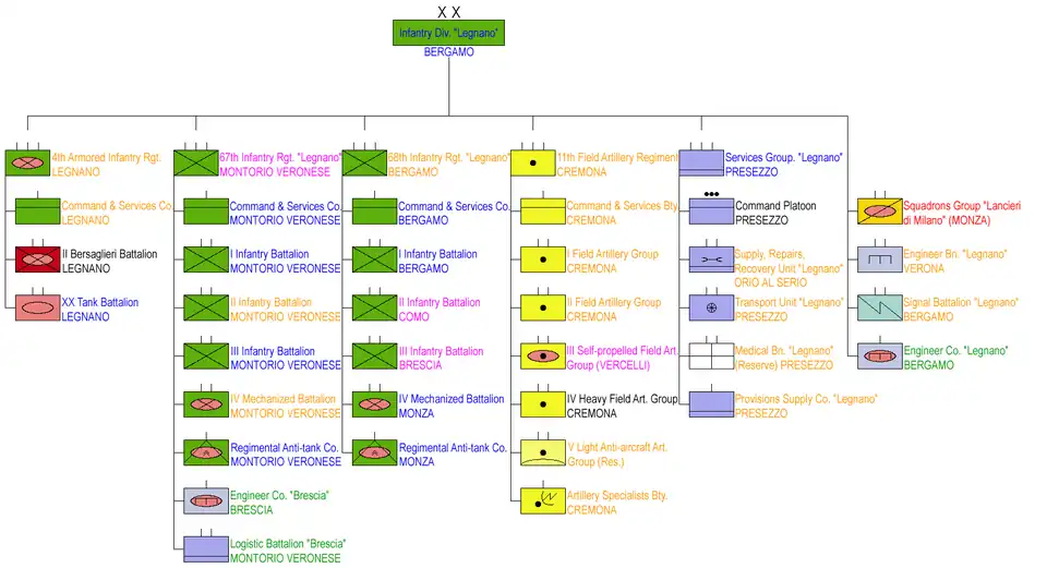- The two brigades were joined by the Mechanized Brigade "Legnano", which was named for the World War II 58th Infantry Division "Legnano", which in turn had been named for the medieval Battle of Legnano fought between the Lombard League and Holy Roman Emperor Frederick Barbarossa.