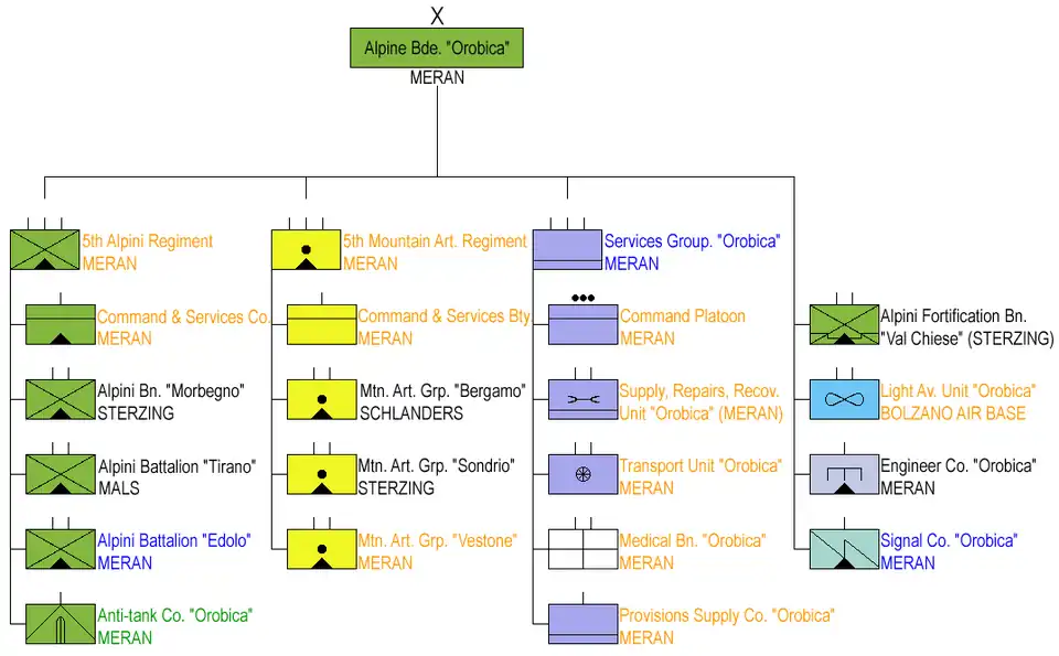 Alpini battalions and the associated mountain artillery groups had been recruited in the Alpine valleys of Northern Italy and were named since 1887 for the location of their main depot. With the 1975 reform Alpini battalions and mountain artillery groups became independent under their historic names.