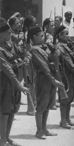 In 1939, laws were passed that allowed Muslims to be permitted to join the National Fascist Party and in particular the Muslim Association of the Lictor (Associazione Musulmana del Littorio). This allowed the creation of Libyan military units within the Italian army.[39] In March 1940, two divisions of Libyan colonial troops (for a total of 30,090 native Muslim soldiers) were created and in summer 1940 the first and second Divisions of Fanteria Libica (Libyan infantry) participated in the Italian offensive against the British Empire's Egypt:[40] 1st Libyan Division and 2nd Libyan Division.