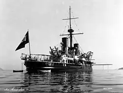 The ship was protected by Harvey steel. The main belt was 249 mm (9.8 in) thick, and the deck was 70 mm (2.75 in) thick. The conning tower was protected by 249 mm of armor plating. The main battery guns had 249 mm thick plating, and the casemates were 150 mm (5.9 in) thick.[1]