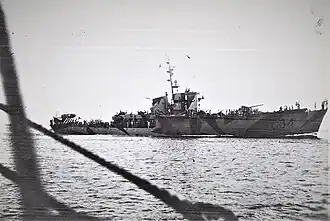 On 9 September 1943, a day after the Italian armistice, Baionetta transported King Victor Emmanuel III and General Pietro Badoglio, together with their respective entourages and general staff officers, from the small harbour town of Ortona and sailed south escorted by the Italian Capitani Romani-class light cruiser Scipione Africano, arriving in Brindisi the next day.[1][2]
