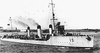 Insidioso (English: "Insidious") was an Italian Indomito-class destroyer. Commissioned into service in the Italian Regia Marina (Royal Navy) in 1914, she served in World War I, playing an active role in the Adriatic campaign and seeing action in the Battle of the Strait of Otranto in 1917. Reclassified as a torpedo boat in 1929, she was stricken in 1938. Reinstated in 1941, she was captured by Nazi German forces in 1943 during World War II. She then served in the German Kriegsmarine as TA21 until she was sunk in 1944.