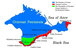 Over time, the Genoese possessions in Crimea expanded from Kafa westward to Balaklava, and expanded east of Kafa with the acquisition of Kerch.[8] Kerch was a populous and rich city founded in 1332 by Pope John XXII. It was elevated to a metropolis and appointed the Dominican Francesco da Camerino as its spiritual pastor.[5] The first mention of a Genoese consulate in Kerch dates back to 1456.[8]