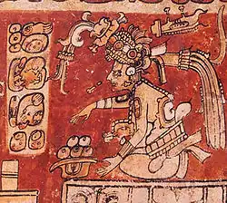Itzamná (Mayan pronunciation: [it͡samˈna]) is, in Maya mythology, an upper god and creator deity thought to reside in the sky. Itzamná is one of the most important gods in the Classic and Postclassic Maya pantheon.[1] Although little is known about him, scattered references are present in early-colonial Spanish reports (relaciones) and dictionaries. Twentieth-century Lacandon lore includes tales about a creator god (Nohochakyum or Hachakyum) who may be a late successor to him. In the pre-Spanish period, Itzamná was often depicted in books and in ceramic scenes derived from them. Before the names of the Maya deities were deciphered, Itzamná was known, and is still sometimes referred to by archeologists, as "God D".
