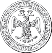 For the next six years, pro-Moscow and anti-Moscow factions in Novgorod competed with one another.[46] Ivan visited Novgorod several times during this period, persecuting a number of pro-Lithuanian boyars and confiscating their lands. In 1477, two Novgorodian envoys, claiming to have been sent by the archbishops and the entire city, addressed Ivan in public audience as gosudar (sovereign) instead of the usual gospodin (sir).[49] Ivan at once seized upon this as a recognition of his sovereignty, and when the Novgorodians repudiated the envoys (indeed, one was killed at the veche and several others of the pro-Moscow faction were killed with him) and swore openly in front of the Moscow ambassadors that they would turn to Lithuania again, he marched against them. Surrounded by Ivan's army, Novgorod ultimately recognized Ivan's direct rule over the city and its vast hinterland in a document signed and sealed by Archbishop Feofil of Novgorod (1470–1480) on 15 January 1478.[50][46]