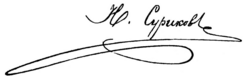 In the late 1860s Surikov met two poets, Alexander Levitov and Filipp Nefyodov, who helped him get his verses published in magazines like Delo, Otechestvennye Zapiski, and Semya i Shkola. In 1871 his debut collection Poems came out (to be re-issued in 1875 and 1877). The leftist critics greeted the newcomer but deplored the rather limited thematic scope (peasant's hardships, stepmother's cruelty, set marriages, etc.) of his work.[2] In the early 1870s Surikov began corresponding with other self-taught poets from all over the country. The Rassvet (Sunrise) anthology came as a result, featuring poems by A.Bakulin, S.Derunov and D.Zharov among others. In 1875, he became a member of the Russian Literature Society (nominated by Fyodor Buslayev, and supported by Leo Tolstoy). His next project, a literary magazine exclusively for authors from the lower classes, failed to materialize. In the late 1870s Ivan Surikov fell ill with tuberculosis. He died in Moscow in 1880, at the peak of his creativity.[1]