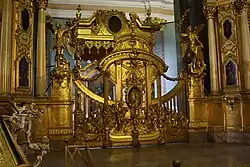 Ivan Petrovich Zarudny was a Baroque wood-carver and icon-painter from Sloboda Ukraine who was active in Moscow in the reign of Peter the Great. Among his works are several elaborate icon screens and triumphal arches built in wood to celebrate Peter's victory in the Battle of Poltava. Very little is known about him. In the Soviet years much of early Petrine Baroque architecture in the Moscow region, including the Menshikov Tower and the Church of St. John the Warrior, was attributed to this mysterious figure.[1] In more recent works Zarudny has been "classed as a skillful woodcarver and icon-painter in the employ of European masters imported by Peter I".[2]