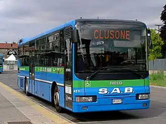 MyWay is a bus for extraurban routes. Designed to replace the Iveco EuroRider, it was produced in an only version with a length of 12 meters (39 ft 4+1⁄2 in), the only option regarding the central door, which could be single or double. Units produced from 1999 to 2001 had the IVECO brand, with a Fiat AIFO engine with a power of 350 hp (260 kW). Starting from 2002, the buses were provided with a new Cursor engine, with power of 310 or 352 hp (231 or 262 kW). The MyWay had 55 or 53 seats, depending from the type of the central door.