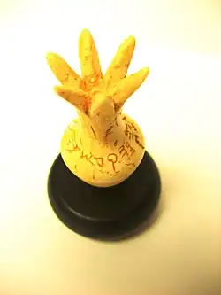The thumb-sized ivory pomegranate measuring 44 millimetres (1.7 in) in height, bears an ancient Hebrew inscription that reads, depending on the point chosen as the beginning in the circular inscription, "Belonging to the Temple [literally 'house'] of YHWH, holy to the priests" or "Sacred donation for the priests of [or 'in'] the Temple [literally 'house'] of YHWH". It was once believed by some scholars to have adorned a sceptre used by the high priest in Solomon's Temple. Its origin is unknown as it appeared on the antiquities market anonymously in 1979 and was smuggled out of Israel and sold to an anonymous collector in France. Based on authentication by Israel's then leading epigrapher, Professor Nahman Avigad of Hebrew University,[4] the Israel Museum in Jerusalem purchased it from the collector for the sum of $550,000 in 1988. It was considered the most important item of biblical antiquities in the Israel Museum's collection.[5]