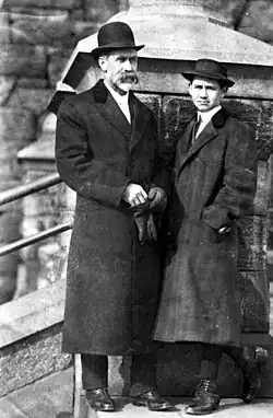 After completing murals at the Salt Lake Temple, Fairbanks began teaching one of the first college art classes at Brigham Young Academy (now Brigham Young University).[6]: 103 He still received little public recognition despite having established a photographic studio and art gallery.[7] Then, on May 8, 1898, his wife Lillie died from a fall downstairs. She had been carrying their baby son and may have sacrificed herself to save him. The boy, Avard, suffered no serious injuries and grew up to be a well-known sculptor.[5] After the death of his wife, Fairbanks moved his family to Ogden, Utah and became the first supervisor in Ogden public schools.[6]: 103 In 1902, struggling to support his seven children, he accepted an offer of employment from Benjamin Cluff to make sketches and photographs on his archaeological expedition to Latin America. There, they intended to discover evidence for the Book of Mormon.[7][13]: 1 Fairbanks moved his family to Alberta, Canada to run a farm, but returned to Salt Lake City due to droughts and difficult winters.[13]: 1 Back in Salt Lake City, Fairbanks resumed painting, giving private art lessons and running a small farm to provide for his family.[13]: 1 Fairbanks spent time in New York City where he made copies of art pieces from the Metropolitan Museum to sell. Avard Fairbanks joined his father to copy pieces soon after.[13]: 1 Fairbanks helped his son cultivate his work and develop his technique, hoping Avard would be able to achieve a level of success that he had not.[5]: 141 They returned to Salt Lake City after commissions and finances dwindled.[13]: 2 In 1914, Fairbanks accompanied Avard to Paris where he was to study at the Ecole Nationale des Beaux Arts. Here, Fairbanks studied privately.[5]: 146