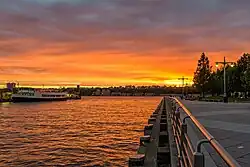 Pier 63 was originally located near 23rd Street, adjacent to Chelsea Piers and Hudson River Park. The site was formerly the location of a Pavonia Ferry terminal that opened in 1869. The ferries traveled to Jersey City, located opposite Manhattan.[79] By the beginning of the 20th century ferries were already aging and deteriorating under heavy use,[80] and in 1942 the terminal itself was demolished.[81] The pier then housed a Baltimore and Ohio Railroad transfer barge. In the late 1980s, boat enthusiast John Krevey converted an old railroad barge on the Hudson River to Pier 63.[82] A restaurant was opened on the pier. The lightship Frying Pan and the fire vessel John J. Harvey were also originally moored to Pier 63,[83] with both listed on the National Register of Historic Places.[84] In 2007, the barge was moved to Pier 66 on 26th Street.[85]