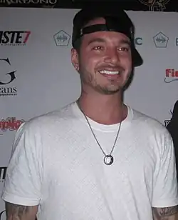 Balvin has called fashion "his life's passion, on the same level as music."[12] He appeared as an ambassador during the 2017 New York Fashion Week, and has called for greater representation of Latinos in the fashion world.[13] He utilizes eccentric accessories such as cowboy hats, colorful tracksuits, and ripped jeans.[69] Isabela Raygoza described his aesthetic at the 2017 Latin Grammys as a "Latin raver Eminem" due to his neon blonde hair and brightly colored athletic clothing.[36] His style often combines streetwear traditionally associated with reggaeton artists and classic luxury brands.[78] Balvin is influenced by musicians such as Kanye West and Pharrell Williams who have made forays into fashion. Discussing Pharrell's influence, Balvin explained, "I don't dress exactly like him, but I want to be like him in the cultural way. He opens the doors for a lot of new fashion designers and creates his own style. It's all about love with him and he's the culture."[16]