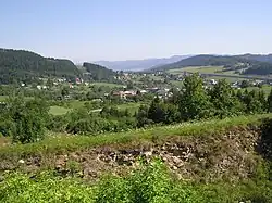 ![]() Jablunkov Pass seen from the southern slopes of Girová mountain, looking northwest | |