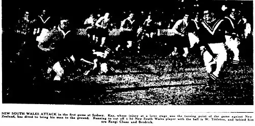 - ^ "New Zealanders Outplayed By Fiery Forwards". Referee (Sydney, NSW : 1886 – 1939). 23 June 1938. p. 14. Retrieved 28 February 2024.