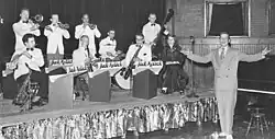 Melick, along with a handful of other featured players, was hand-selected by Landsberg to join the renowned band leader Orrin Tucker on a new dance music program; The Orrin Tucker Show.[5] Melick was briefly the center of controversy as Jimmy Palmer publicly accused Landsberg of stealing his piano player.[6] It didn't last long and everyone involved got a bit of free publicity. Melick remained the featured pianist on The Orrin Tucker Show until it was cancelled in October 1956 shortly after the death of Landsberg.[7]