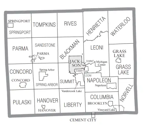 - ^ "2020 CENSUS - SCHOOL DISTRICT REFERENCE MAP: Jackson County, MI" (PDF). U.S. Census Bureau. Retrieved July 22, 2022. - Text list