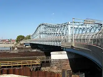 The Jackson Street Bridge is a bridge on the Passaic River between Newark and Harrison, New Jersey.[2] The swing bridge is the 6th bridge from the river's mouth at Newark Bay and is 4.6 miles (7.4 km) upstream from it.[1] Opened in 1903 and substantially rehabilitated in 1991 it is listed on the New Jersey Register of Historic Places (ID#1274) and is eligible for the National Register of Historic Places.[3][4] The bridge was re-lamped in 2012.[5][6]