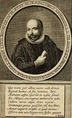 1. ^ a b Jacobus Arminius is the Latinized name of Jakob Hermanszoon; he was also known as Jakob Herman and the Anglicized names of Jacob Arminius and James Arminius.